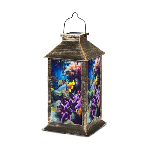 Solar Lantern Funky Colourful Fish Swimming Aquarium Centre London Tropical Aldgate Outdoor Waterproof Garden Hanging Lantern Solar Powered Lighting Outside Table Lamp for Patio Deck Camping 1 Pack