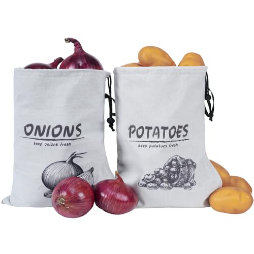 With a generous size of 15.5 inches in height and 11.5 inches in width and length, these bags can store a substantial amount of produce, making them ideal for bulk shoppers or larger households. Being reusable, they are environmentally friendly and a great alternative to plastic or paper bags. The dual-pack option offers flexibility, allowing users to designate one bag for potatoes and another for onions, preventing cross-contamination of odors and flavors. Overall, this storage solution combines functionality, sustainability, and practicality for everyday kitchen needs.