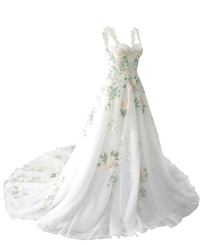 The zcbang Wedding Gown Forest Fairy Wedding Dress is perfect for brides seeking a unique and enchanting look for their special day. Ideal for those who love a colorful floral lace applique design combined with a simple summer backless garden bridal dress, this gown is especially suited for outdoor or garden weddings in warm weather.